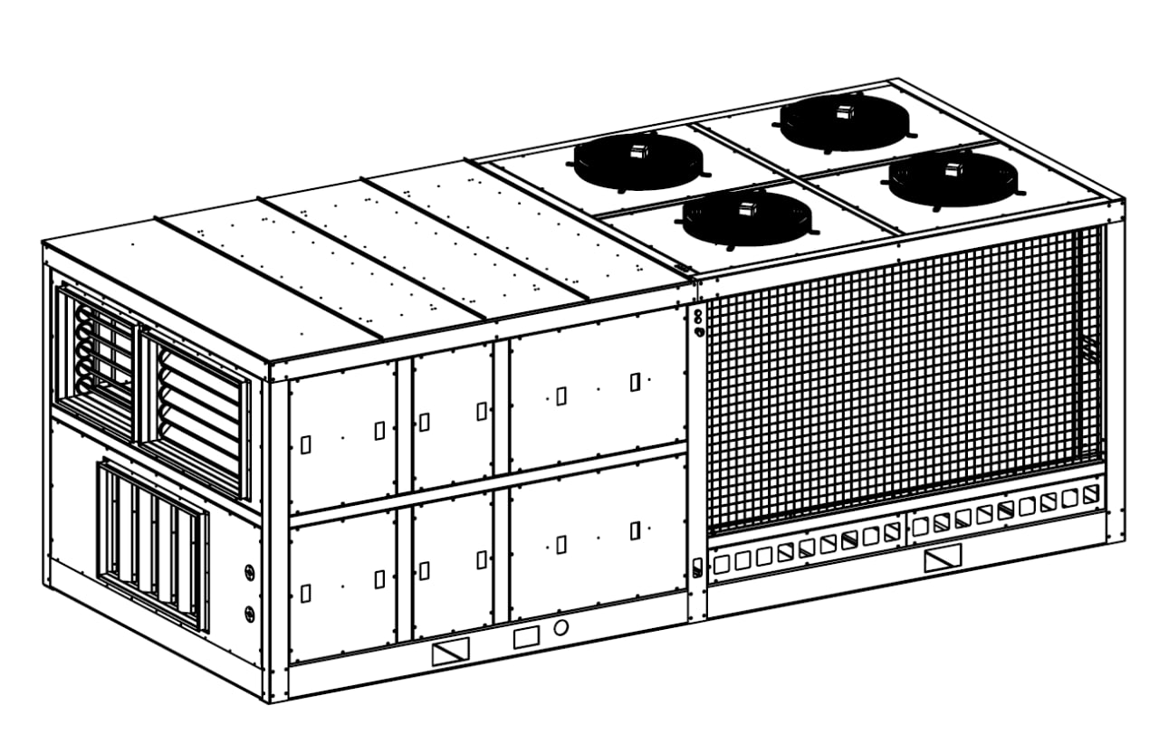Единый агрегат на крыше с вентиляцией, нагревом/охлаждением и встроенным управлением